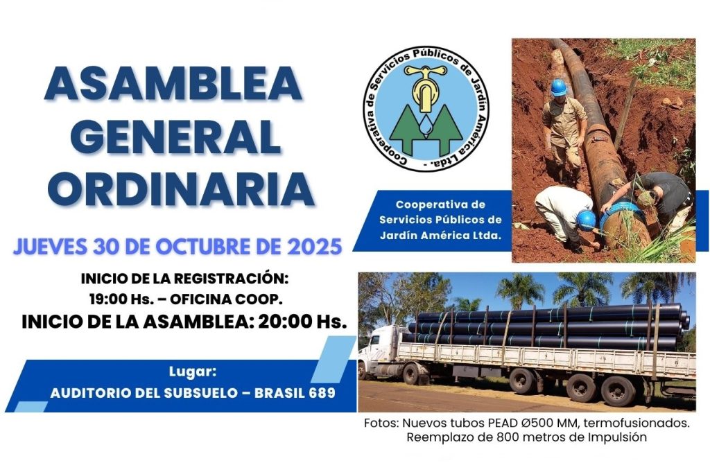 El jueves 30 del corriente año se llevará a cabo la Asamblea General Ordinaria de tu Cooperativa.